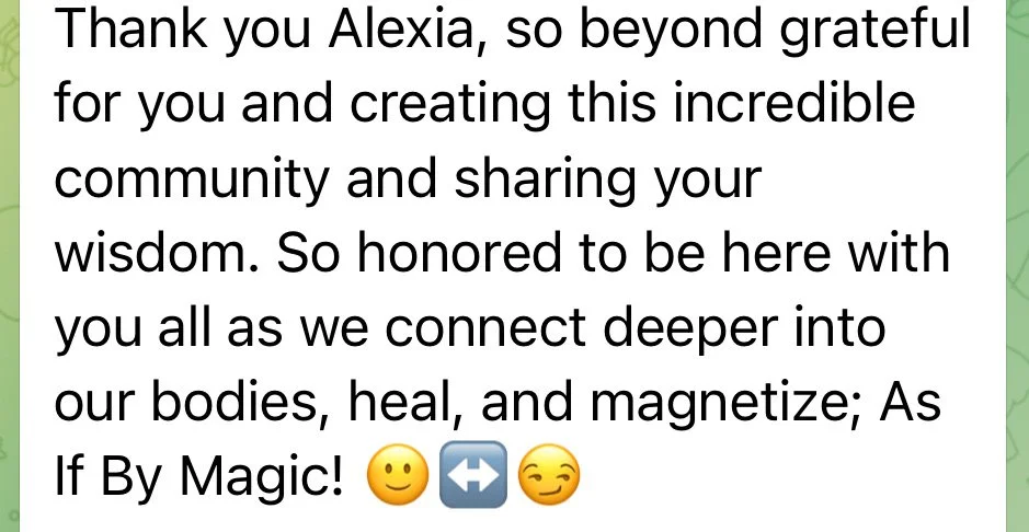 You still get direct access to Alexia during bi-weekly live healing calls, where you can ask questions and get guidance tailored to your situation.